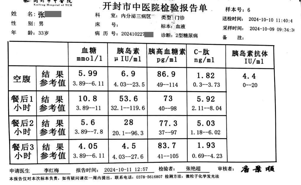在聽完張先生的敘述后,李紅梅副主任醫(yī)師為他安排了全面的檢查,包括胰島功能測試和糖化血紅蛋白水平檢測,檢查結(jié)果如下: